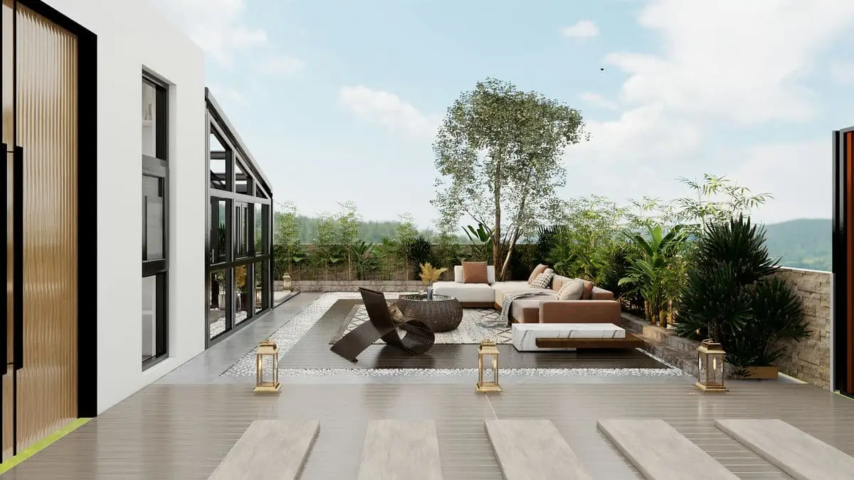 Không gian sống xanh: Villa House Country chú trọng đến việc tạo không gian sống xanh, gần gũi với thiên nhiên. Khu vườn xanh mát bao quanh biệt thự không chỉ mang đến vẻ đẹp thẩm mỹ mà còn giúp điều hòa không khí, tạo cảm giác thư thái và yên bình.