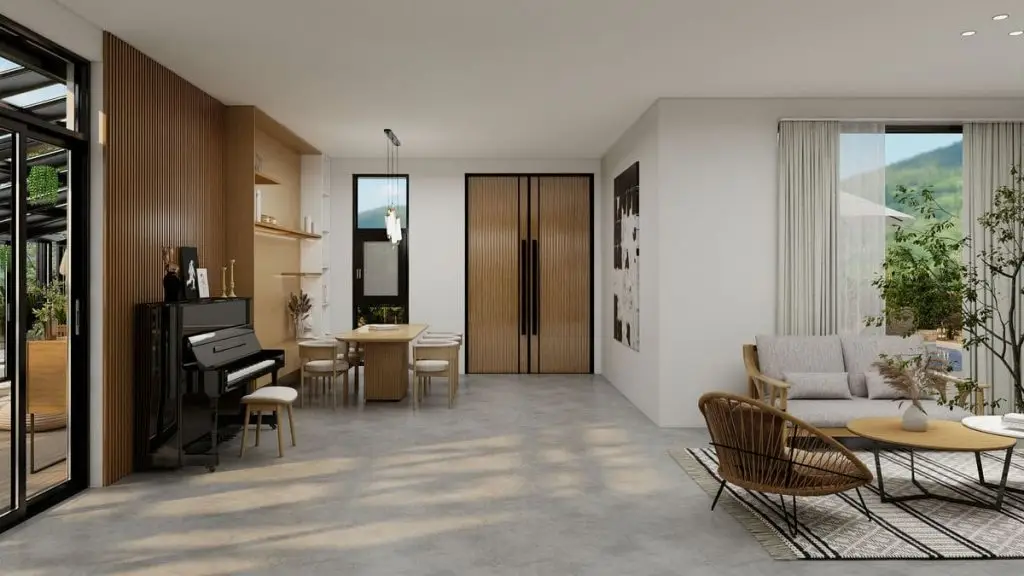 Tiện nghi vượt trội: Villa House Country được trang bị đầy đủ các tiện nghi hiện đại, đáp ứng mọi nhu cầu sinh hoạt của gia đình. Từ phòng khách rộng rãi, bếp ăn ấm cúng, phòng ngủ sang trọng đến khu vực thư giãn ngoài trời xanh mát, tất cả đều được thiết kế và bố trí một cách khoa học và hợp lý.